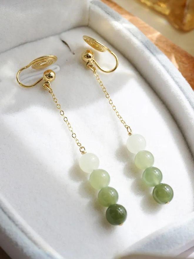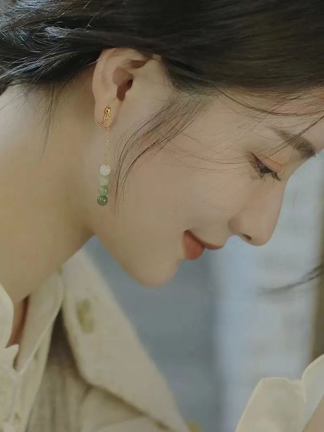 这款耳饰不仅满足了对玉质地的需求,还包涵了各种颜色,层次感分明,日常又百搭。