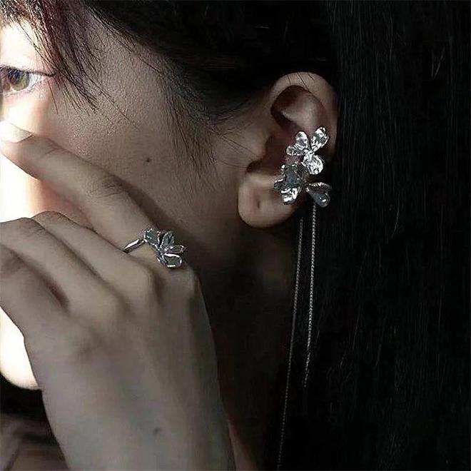 这款耳骨夹表面经过精细打磨,光泽度高,且不易氧化变色。流苏部分则采用轻盈的丝线或金属细链,使得整体耳饰既有质感又不失轻盈。