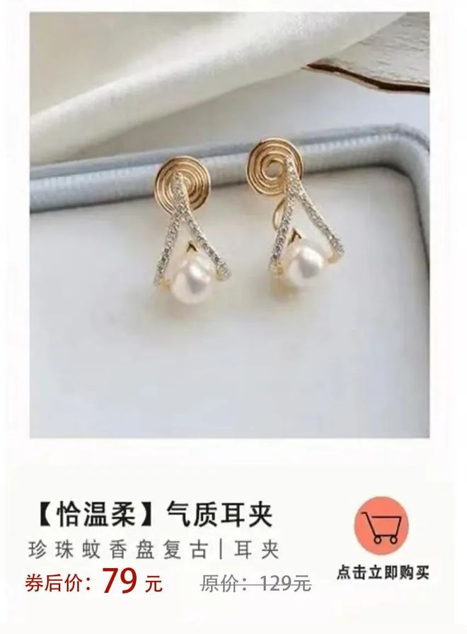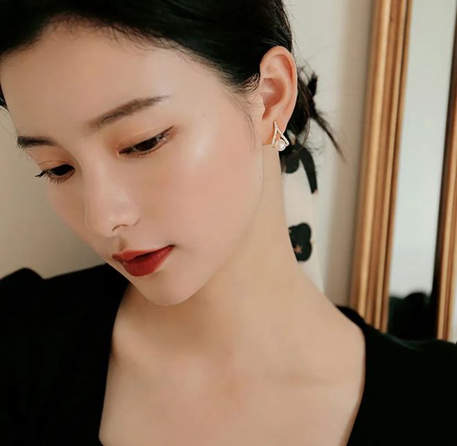 也许是因为它造型主体,弯弯的C型顶部一只晶润的珍珠,给人一种清冷的高级感。