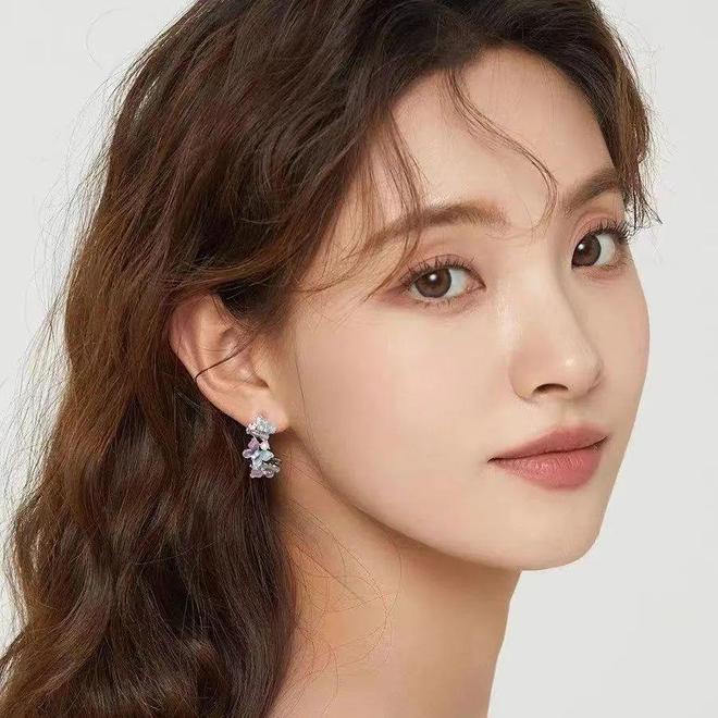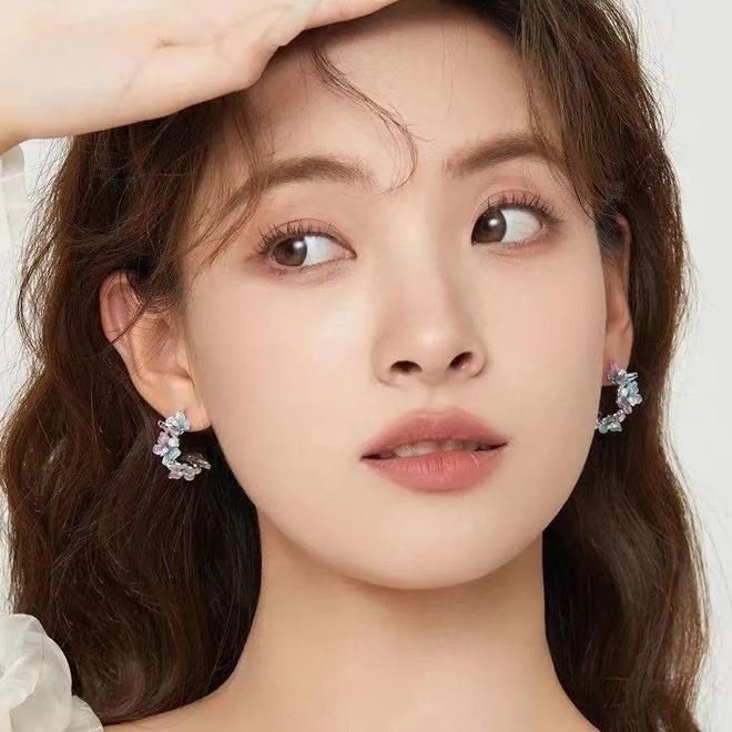 【适合耳饰】:圆形、花瓣形。圆形戴在耳朵上能在脸部两侧增加横向的视觉宽度,平衡过长的脸型比例。花瓣形耳饰则更灵动,层层叠叠的造型能在脸颊旁形成丰富的视觉焦点,分散对脸部长度的注意力,让面部看起来更饱满有活力。