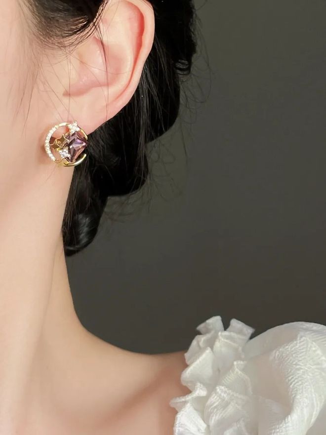 圆形耳饰自带圆润感,能中和颧骨的尖锐线条,让脸部比例更协调。短款扇形耳饰的弧度能巧妙地修饰突出的颧骨,而不会拉长脸部线条,让脸部看起来更饱满。