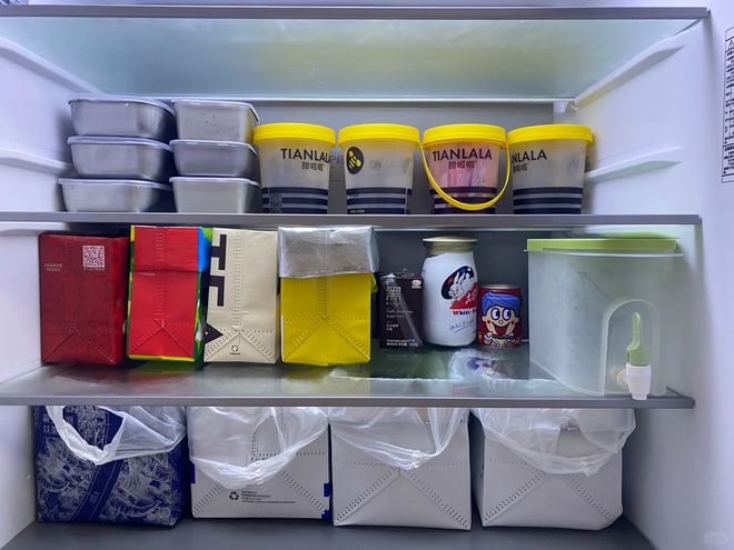 也不会软塌塌的,将这些带子弯折一下,然后放在冰箱当中收纳舌苔非常合适,冰箱立马就整齐了。