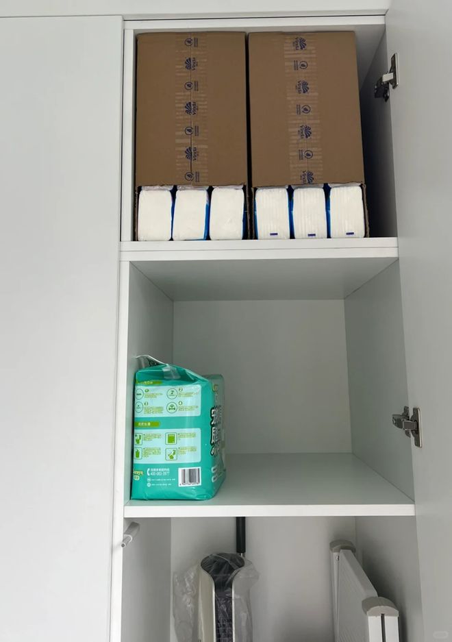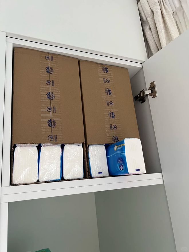阳台的柜子又高又深,用来收纳纸巾虽然容量足够了,但是拿取特别不方便,位置比较高,每次抽出来一个纸抽上面都会倒下来,
