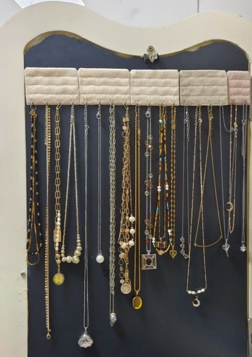 如果你的首饰比较多,像一系列项链,手链,耳环吊坠,这些东西都没法收纳,放在抽屉里,不方便展示,用的时候取出来也比较麻烦,